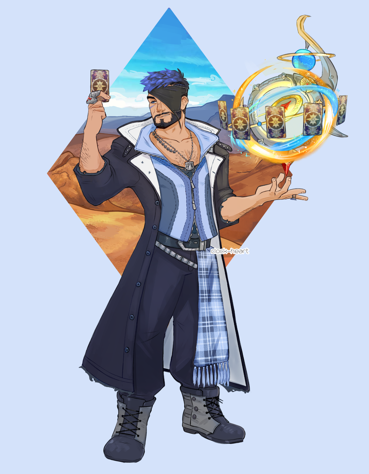 Researcher. Sharpshooter. Chocobo Racer?A free-spirited highlander, Tyr is the man that Gregos is a bit envious of, but someone that he respects. After a few rocky interactions, a chance encounter within the Peaks cemented Tyr as someone that Gregos could learn to trust. The two highlanders grew up very different as the blue-haired man spent years in combat training with little time to learn basics like reading, while the other spent years researching and engineering new gadgets.Gregos hopes to teach Tyr ways to protect himself better as payment for his friend teaching him how to read and write.