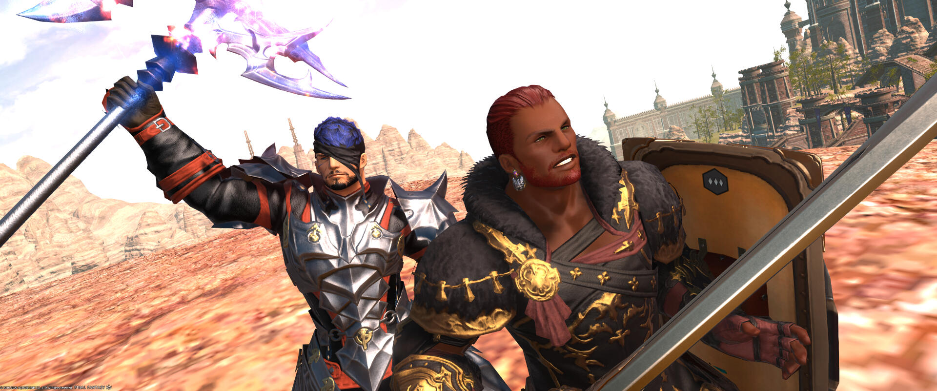 Gregos traveled to Ala Mhigo to answer a strange message to return 'home.' It was there, in the Quarter, that he ran into an imposing man keeping a watchful eye on him.About a moon later, Gregos was out patrolling The Lochs with his trusty axe when he bumped into Berrod, but this time he asked to spar with the (now former) Fist of Rhalgr. Hoping to show the monk that he's not just talking when it comes to serving Ala Mhigo, that he was a capable warrior.Many moons later, Gregos considers Berrod his closest ally and friend. Even if their tempers flare up with one another, he has a deep respect for the highlander. Gregos would never hesitate to put his life on the line if he had to protect his brother-in-arms.